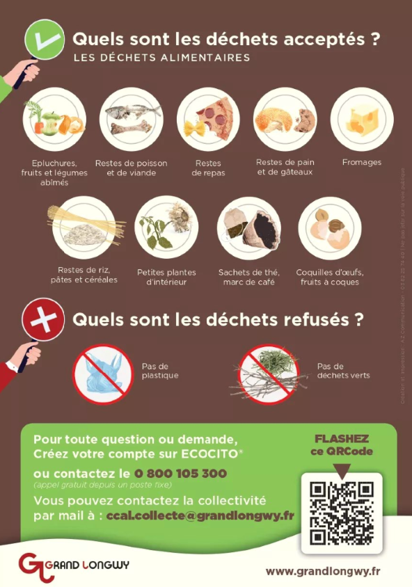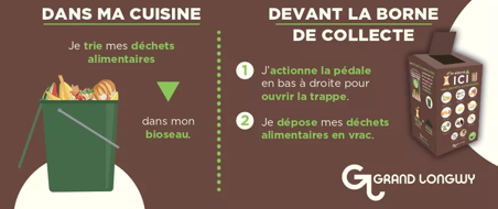 Le collecte des déchets alimentaires en points d’apport volontaire est mise en place par l’Agglomération du Grand Longwy.