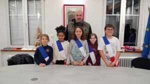 Conseillères & conseillers : Danaëlle COLSON-BERNARD – CM1 ; Candice COURBON MAYER – CM2 ; Mélina GOUJON – CM1 ; Samuel HOUTH – CM2 ; Emma MEUNIER – CM1 ; Délia RUDONI – CM2 ; Victoria SCHWEITZER – CM2 ; Léana SUTERA SARDO – CM2.